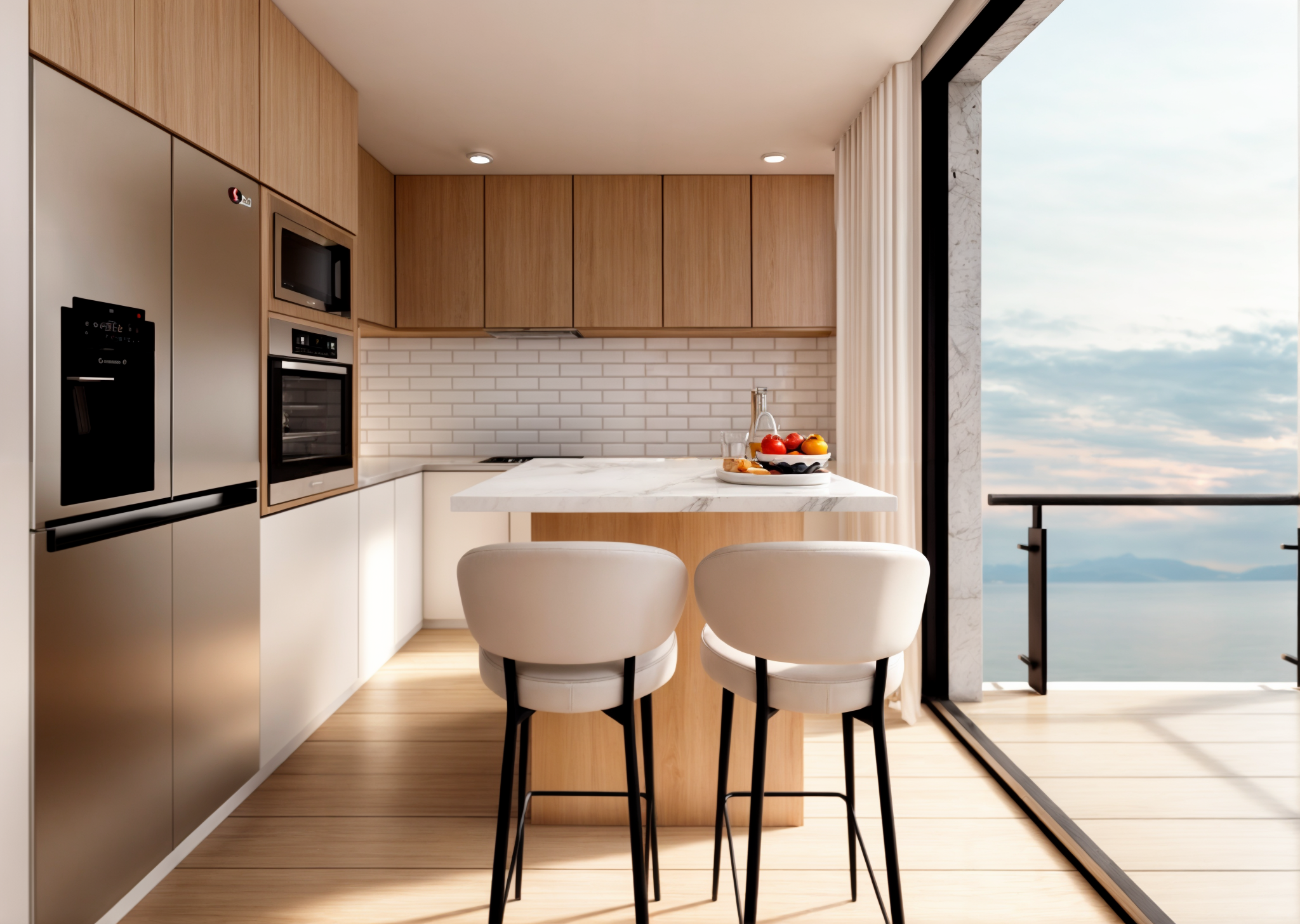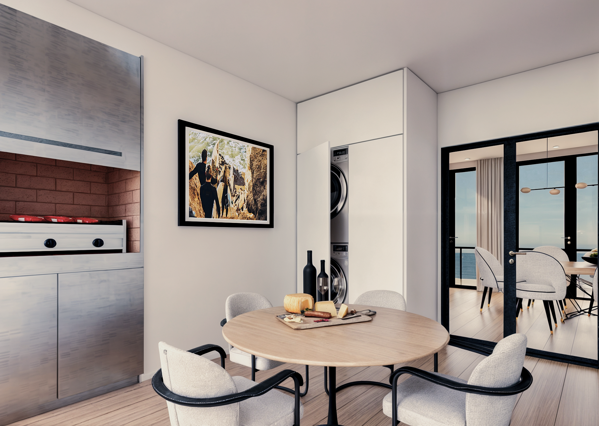 Además, la cocina y el living-comedor están ubicados al frente, teniendo así visuales al mar